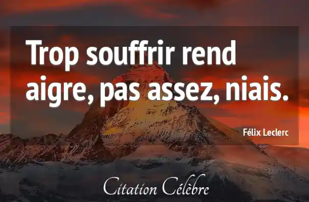 Trop souffrir rend aigre, pas assez, niais.