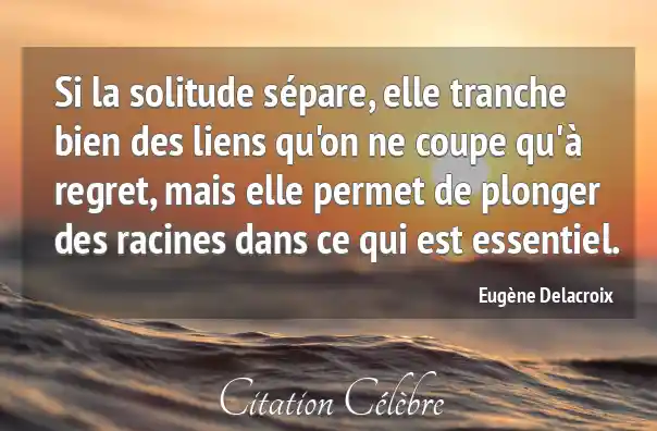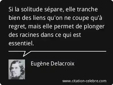 Si la solitude sépare, elle tranche bien des liens qu'on ne coupe qu'à regret, mais elle permet de plonger des racines dans ce qui est essentiel.