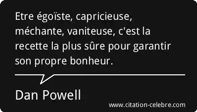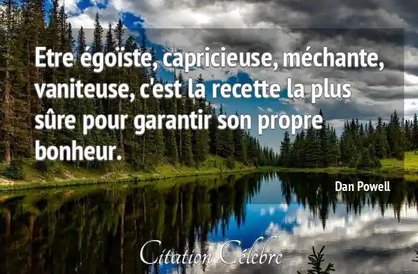 Etre égoïste, capricieuse, méchante, vaniteuse, c'est la recette la plus sûre pour garantir son propre bonheur.