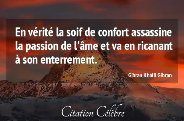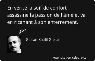 En vérité la soif de confort assassine la passion de l'âme et va en ricanant à son enterrement.