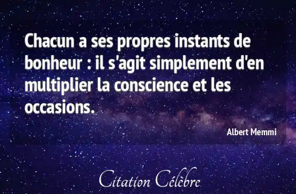 Chacun a ses propres instants de bonheur : il s'agit simplement d'en multiplier la conscience et les occasions.