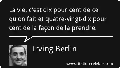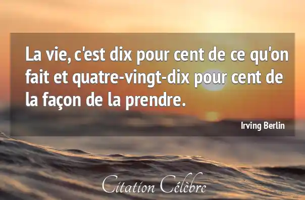 La vie, c'est dix pour cent de ce qu'on fait et quatre-vingt-dix pour cent de la façon de la prendre.