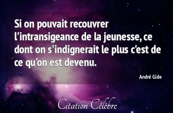 Si on pouvait recouvrer l'intransigeance de la jeunesse, ce dont on s'indignerait le plus c'est de ce qu'on est devenu.