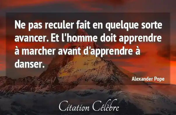 Ne pas reculer fait en quelque sorte avancer. Et l'homme doit apprendre à marcher avant d'apprendre à danser.