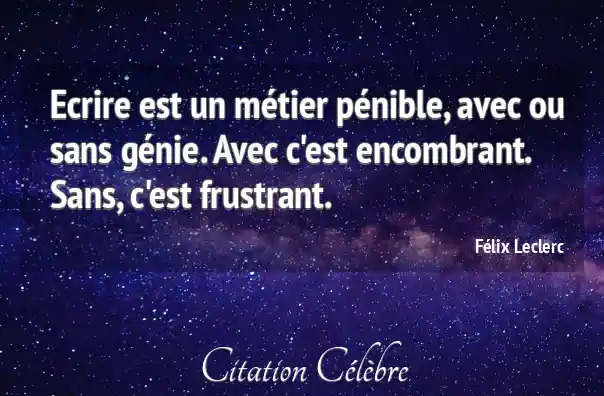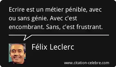 Ecrire est un métier pénible, avec ou sans génie. Avec c'est encombrant. Sans, c'est frustrant.
