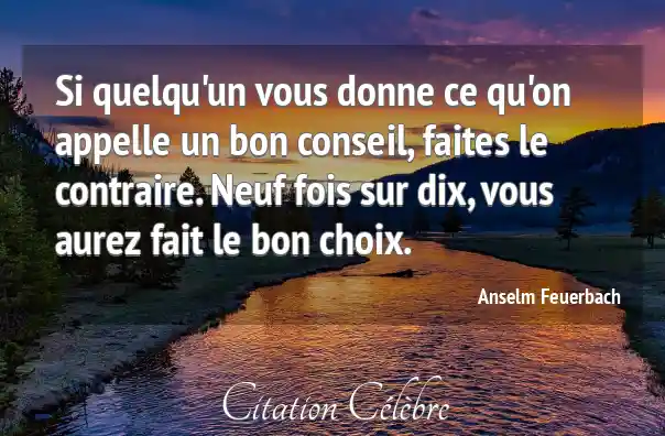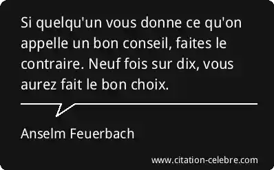 Si quelqu'un vous donne ce qu'on appelle un bon conseil, faites le contraire. Neuf fois sur dix, vous aurez fait le bon choix.