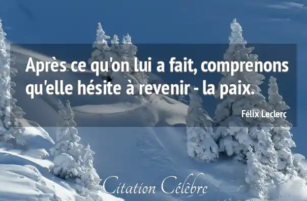 Citation Félix Leclerc paix : Après ce qu'on lui a fait, comprenons qu'elle hésite à...