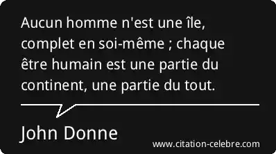 Aucun homme n'est une île, complet en soi-même ; chaque être humain est une partie du continent, une partie du tout.