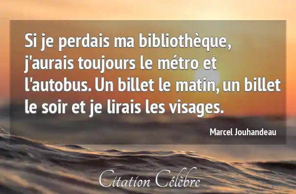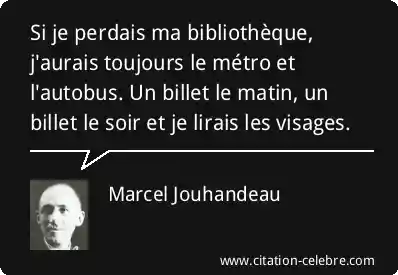 Si je perdais ma bibliothèque, j'aurais toujours le métro et l'autobus. Un billet le matin, un billet le soir et je lirais les visages.