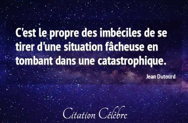 C'est le propre des imbéciles de se tirer d'une situation fâcheuse en tombant dans une catastrophique.