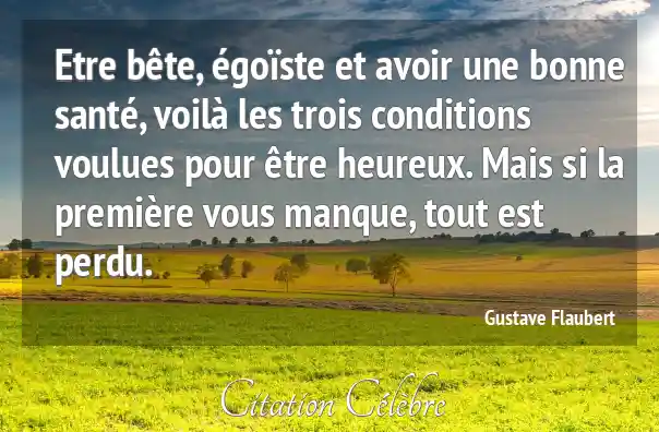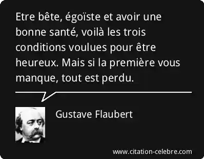 Etre bête, égoïste et avoir une bonne santé, voilà les trois conditions voulues pour être heureux. Mais si la première vous manque, tout est perdu.