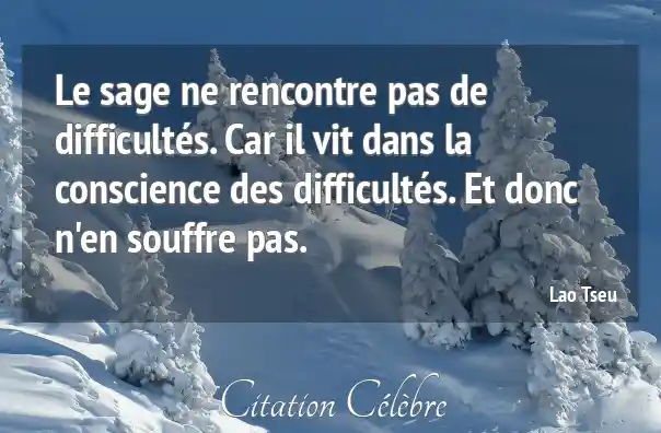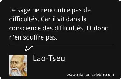 Le sage ne rencontre pas de difficultés. Car il vit dans la conscience des difficultés. Et donc n'en souffre pas.