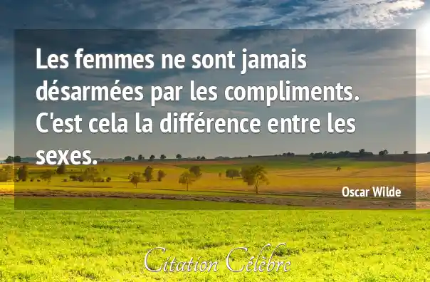 Les femmes ne sont jamais désarmées par les compliments. C'est cela la différence entre les sexes.
