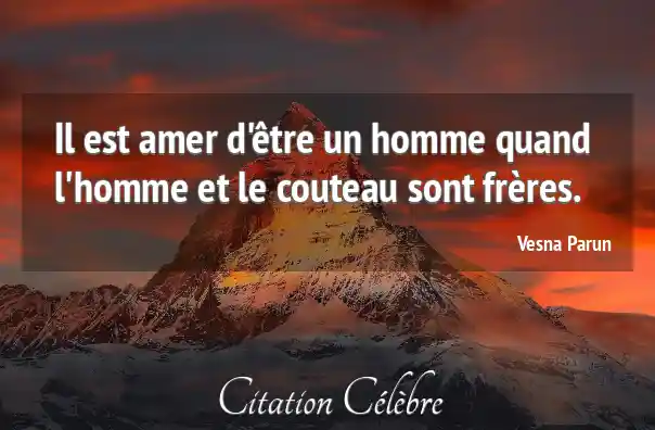 Il est amer d'être un homme quand l'homme et le couteau sont frères.