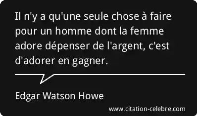 Il n'y a qu'une seule chose à faire pour un homme dont la femme adore dépenser de l'argent, c'est d'adorer en gagner.