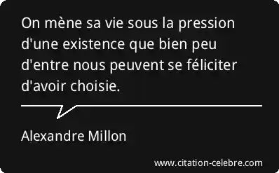 On mène sa vie sous la pression d'une existence que bien peu d'entre nous peuvent se féliciter d'avoir choisie.