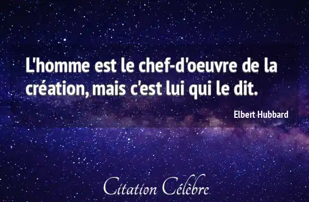 L'homme est le chef-d'oeuvre de la création, mais c'est lui qui le dit.