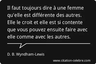 Il faut toujours dire à une femme qu'elle est différente des autres. Elle le croit et elle est si contente que vous pouvez ensuite faire avec elle comme avec les autres.