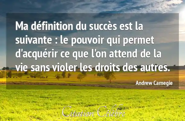 Ma définition du succès est la suivante : le pouvoir qui permet d'acquérir ce que l'on attend de la vie sans violer les droits des autres.