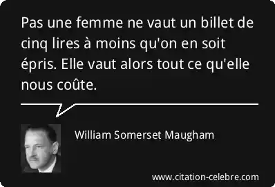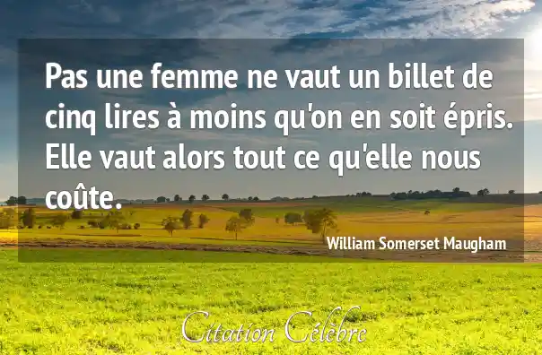 Pas une femme ne vaut un billet de cinq lires à moins qu'on en soit épris. Elle vaut alors tout ce qu'elle nous coûte.