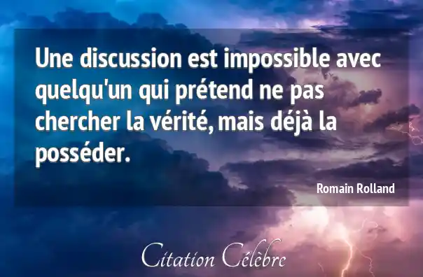 Une discussion est impossible avec quelqu'un qui prétend ne pas chercher la vérité, mais déjà la posséder.