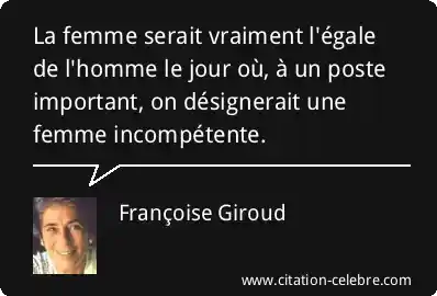 La femme serait vraiment l'égale de l'homme le jour où, à un poste important, on désignerait une femme incompétente.