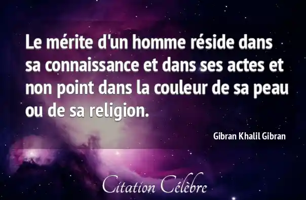 Le mérite d'un homme réside dans sa connaissance et dans ses actes et non point dans la couleur de sa peau ou de sa religion.