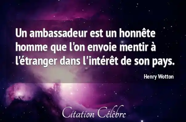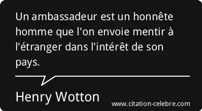 Un ambassadeur est un honnête homme que l'on envoie mentir à l'étranger dans l'intérêt de son pays.