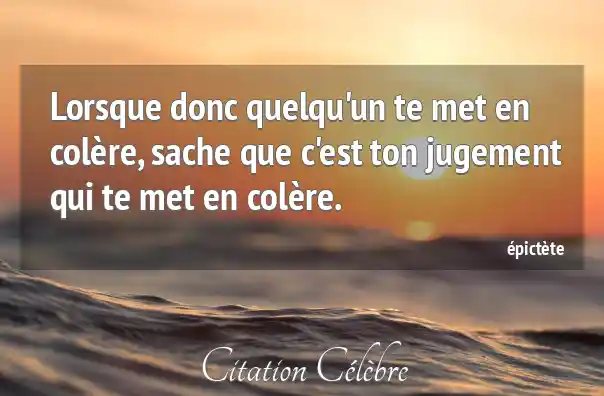 Lorsque donc quelqu'un te met en colère, sache que c'est ton jugement qui te met en colère.