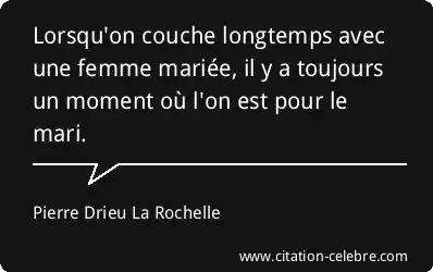 Lorsqu'on couche longtemps avec une femme mariée, il y a toujours un moment où l'on est pour le mari.