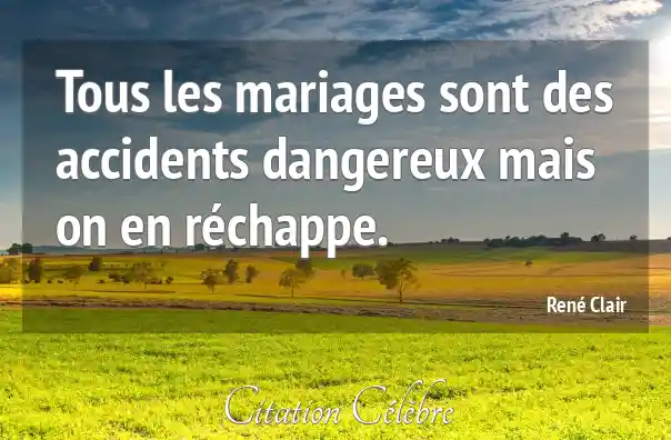 Tous les mariages sont des accidents dangereux mais on en réchappe.