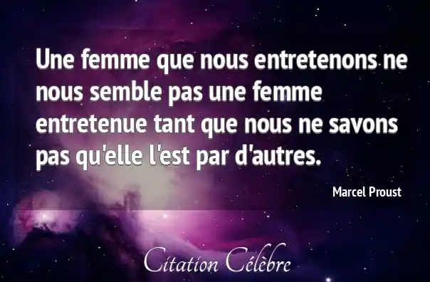 Une femme que nous entretenons ne nous semble pas une femme entretenue tant que nous ne savons pas qu'elle l'est par d'autres.