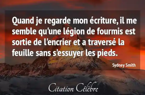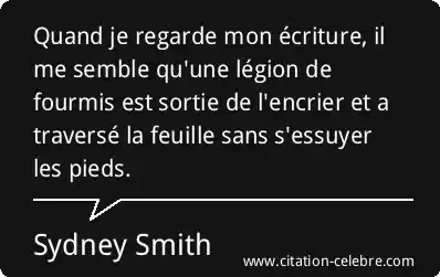 Quand je regarde mon écriture, il me semble qu'une légion de fourmis est sortie de l'encrier et a traversé la feuille sans s'essuyer les pieds.