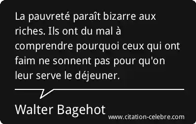 La pauvreté paraît bizarre aux riches. Ils ont du mal à comprendre pourquoi ceux qui ont faim ne sonnent pas pour qu'on leur serve le déjeuner.