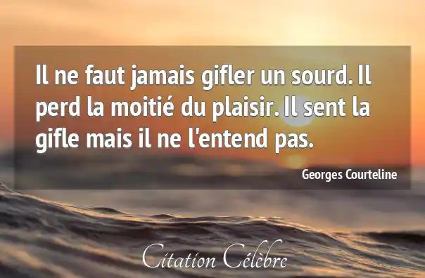 Il ne faut jamais gifler un sourd. Il perd la moitié du plaisir. Il sent la gifle mais il ne l'entend pas.