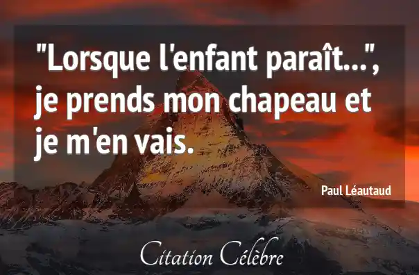 "Lorsque l'enfant paraît...", je prends mon chapeau et je m'en vais.