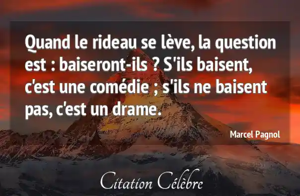 Quand le rideau se lève, la question est : baiseront-ils ? S'ils baisent, c'est une comédie ; s'ils ne baisent pas, c'est un drame.