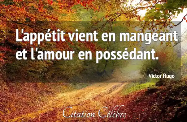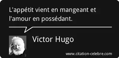 Citation Victor Hugo amour : L'appétit vient en mangeant et l'amour en possédant....