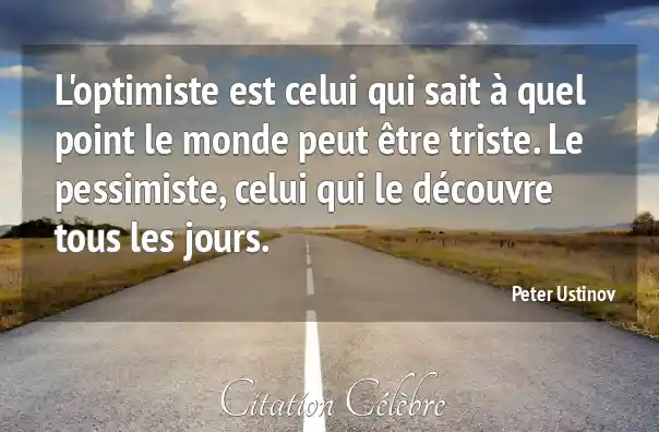 L'optimiste est celui qui sait à quel point le monde peut être triste. Le pessimiste, celui qui le découvre tous les jours.