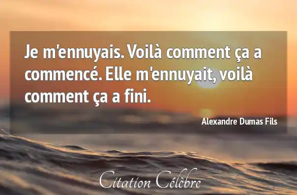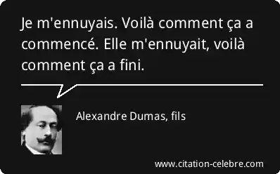 Je m'ennuyais. Voilà comment ça a commencé. Elle m'ennuyait, voilà comment ça a fini.