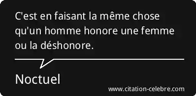 C'est en faisant la même chose qu'un homme honore une femme ou la déshonore.