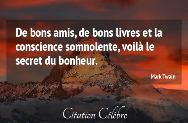 De bons amis, de bons livres et la conscience somnolente, voilà le secret du bonheur.