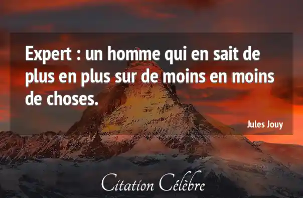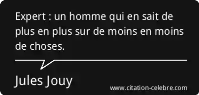 Expert : un homme qui en sait de plus en plus sur de moins en moins de choses.