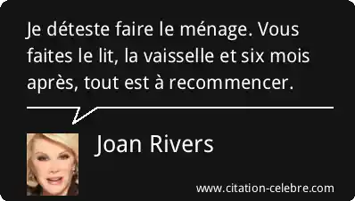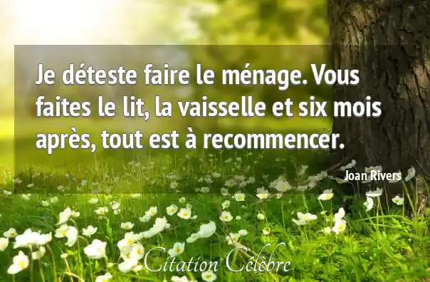 Je déteste faire le ménage. Vous faites le lit, la vaisselle et six mois après, tout est à recommencer.