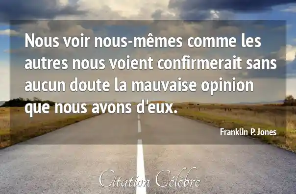 Nous voir nous-mêmes comme les autres nous voient confirmerait sans aucun doute la mauvaise opinion que nous avons d'eux.