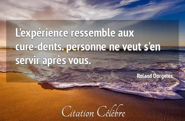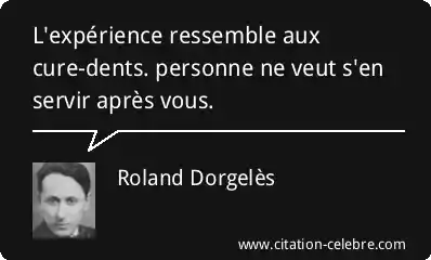 Citation Roland Dorgelès personne : L'expérience ressemble aux cure-dents. personne ne veut s'en servir après...
