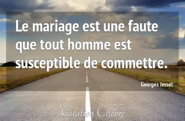Le mariage est une faute que tout homme est susceptible de commettre.
