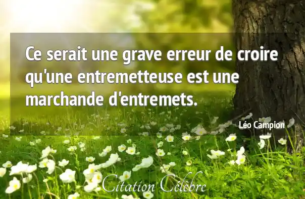 Ce serait une grave erreur de croire qu'une entremetteuse est une marchande d'entremets.