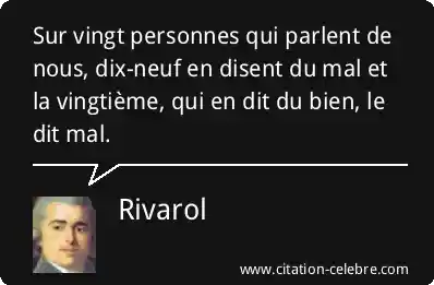 Sur vingt personnes qui parlent de nous, dix-neuf en disent du mal et la vingtième, qui en dit du bien, le dit mal.