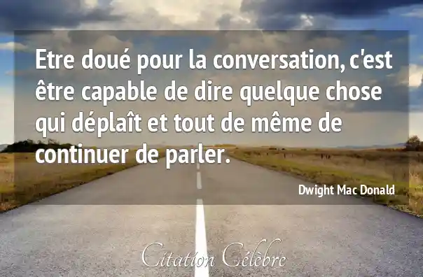 Etre doué pour la conversation, c'est être capable de dire quelque chose qui déplaît et tout de même de continuer de parler.